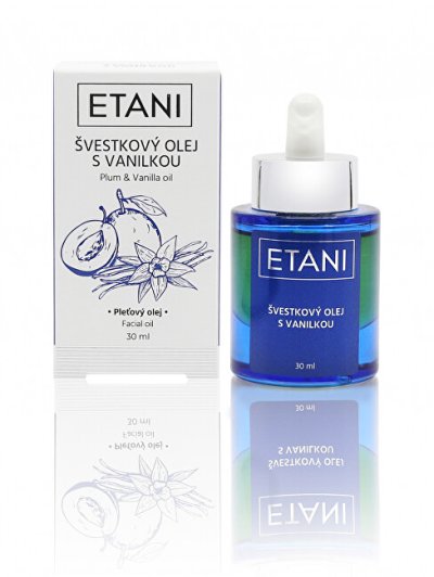 ETANI Švestkový olej s vanilko má zlatavou barvu a nádhernou vůni, která připomíná marcipán. Velmi dobře se vstřebává do pleti, neucpává póry a nezanechává pocit mastnosti. ETANI Švestkový olej s vanilkou dopřeje vaší pleti regeneraci, zářivý vzhled a vláčnost. Zajímavostí je, že dopřeje vaši pleti ještě vyšší ochranu před volnými radikály než arganový olej. Švestkový olej je vhodný pro toho, kdo trpí na suchou, citlivou nebo podrážděnou pleť. Olej má protizánětlivé vlastnosti, které pomáhají snižovat potíže s podrážděnou pletí, redukují vrásky a kruhy pod očima. Výhody a přednosti ETANI Švestkového oleje s vanilkou? Hydratace a regenerace pleti. Zklidnění pleti. Protizánětlivé účinky. Pružnost pleti. Jaké jsou hlavní účinné látky v oleji? Vanilka - K čemu je vlastně dobrá v kosmetice vanilka? Vanilka se může přidávat do parfémů, krémů, olejů a dalších kosmetických přípravků, je výborným antioxidantem. Pomáhá při kožních onemocněních jako je např. dermatitida nebo ekzémy.