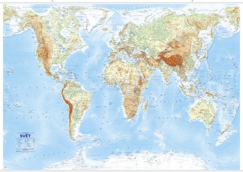 přepracované vydání původní obecně zeměpisné mapy. Nyní ještě přehlednější a čitelnější. Ideální spojení politické a fyzické mapy. Kombinuje to nejdůležitější z obou populárních map: hranice a názvy států, všechna hlavní a další významná města, stínovaný reliéf, horopis a vodopis, ostrovy a souostroví. -laminovaná mapa s lištou, v tubusu -státy světa a jejich hlavní města -nezávislá, závislá a sporná území -vodstvo, pohoří a nejvyšší vrcholy, nížiny, ostrovy a souostroví -horské pevninské a šelfové ledovce -stínovaný terén, včetně mořského dna -atraktivní design bet rámu