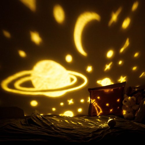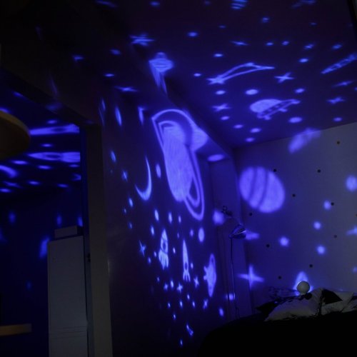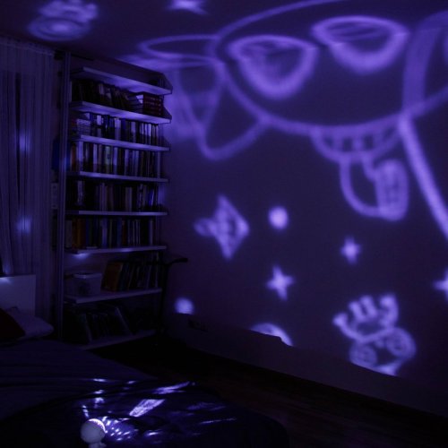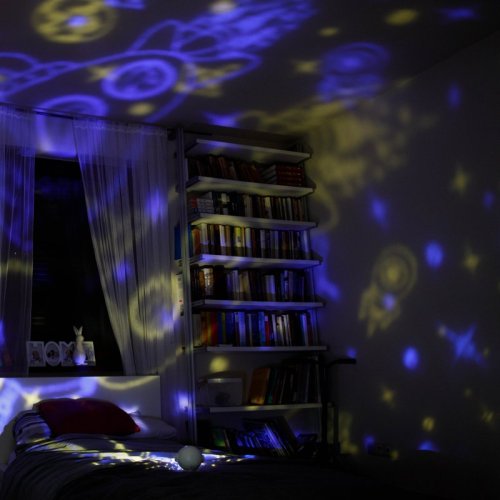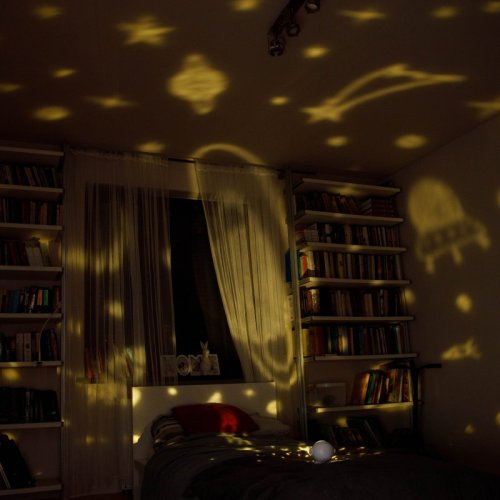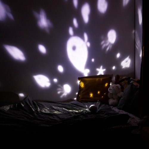 • světelný projektor, který přenáší krásné a uklidňující obrázky vesmíru či oceánu do dětského pokoje