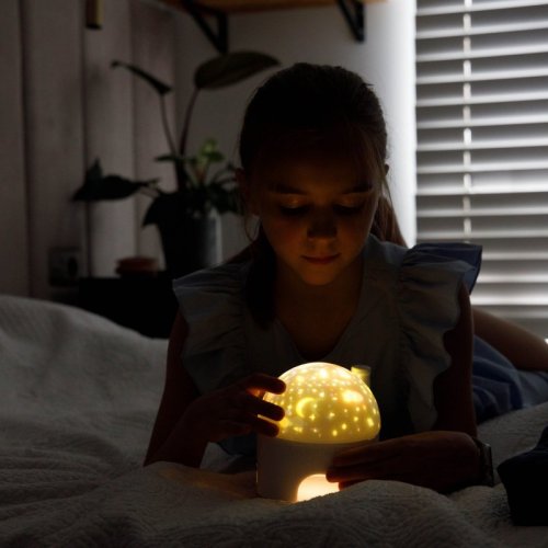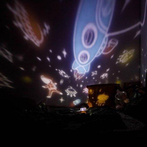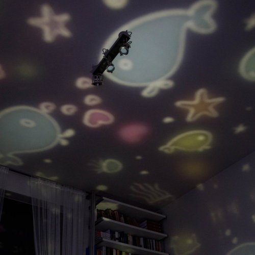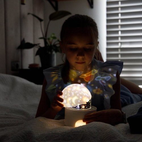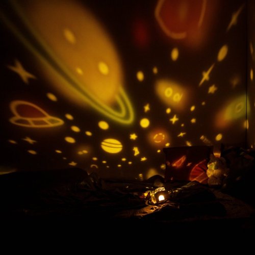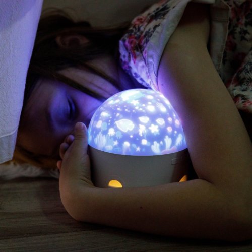 • světelný projektor, který přenáší krásné a uklidňující obrázky vesmíru či oceánu do dětského pokoje