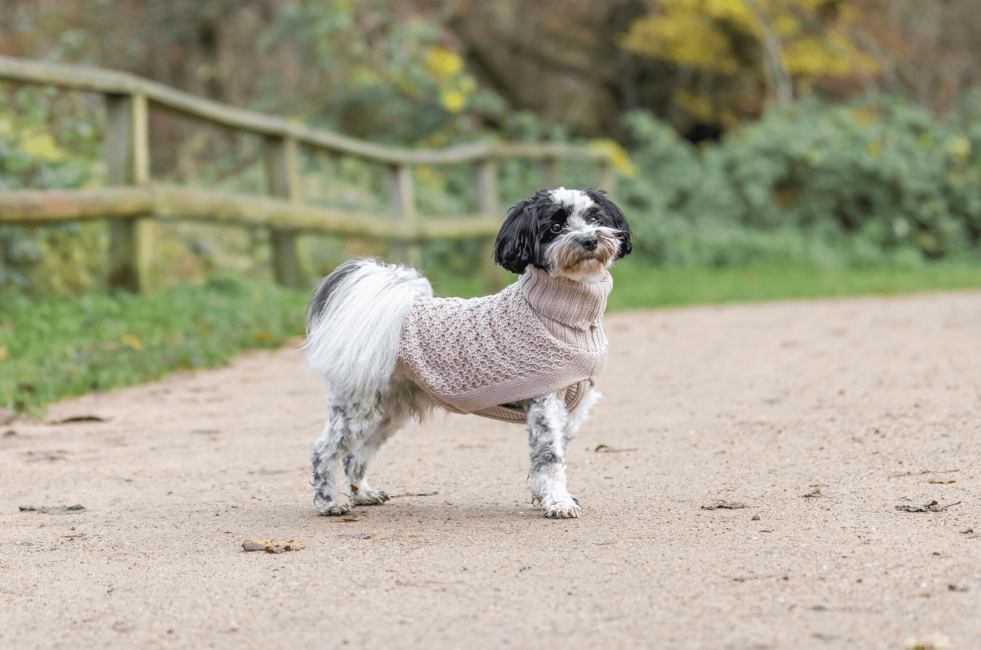 Velkorysé otvory na nohy umožňují přirozený pohyb ramen, díky čemuž se pejsek cítí pohodlně i při běhu nebo hře. Přiléhavý střih drží obleček na místě a brání jeho posouvání, takže se hodí i pro aktivnější psy.