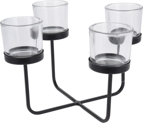 4ramenný svícen 25 x 19,5 x 15,9 cm, sklo/kov. ČER.