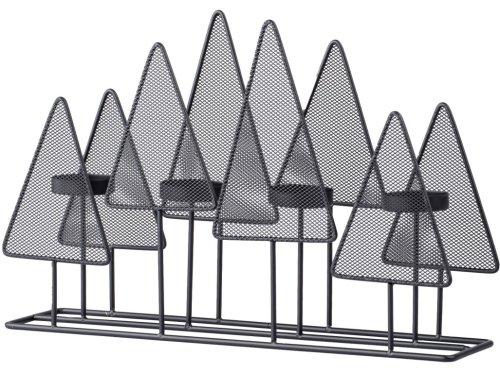 Kovový svícen ve tvaru stromku o rozměru 380 × 90 × 250 mm pojme 4 čajové svíčky. Elegantní černé provedení vytváří slavnostní a moderní atmosféru. Stabilní konstrukce zajišťuje bezpečné umístění svíček a dekorativní efekt, vhodný pro stolní aranžmá nebo samostatnou výzdobu.