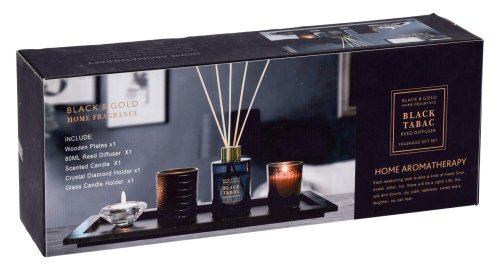 rozměry: 38 x 15 x 0,95 cm materiál: dřevo/sklo sada obsahuje: diffuser, svíčka ve skle, 2 x skleněný svícen, drevěný podnos