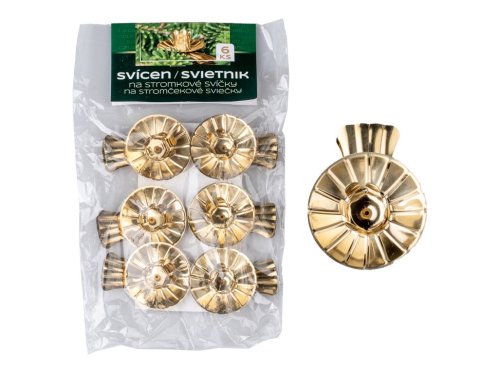 Svícen kov 6ks na stromk. svíčku se skřipcem zlaté