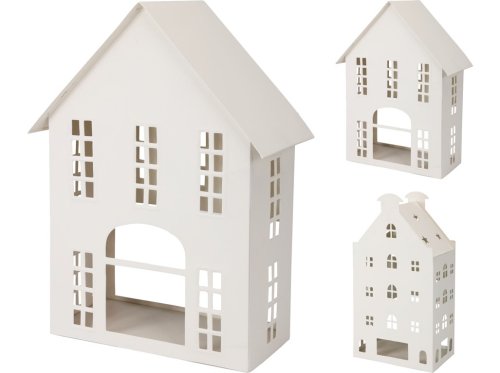 Svícen plech 200x110x320mm na čajovou svíčku domek mix, bílá