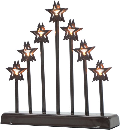 Vánoční svícen s hvězdičkami navodí ve vaší domácnosti kouzelnou atmosféru Vánoc. Je opatřený 7 LED světýlky a je vhodný pro umístění na stůl, poličku nebo parapet.