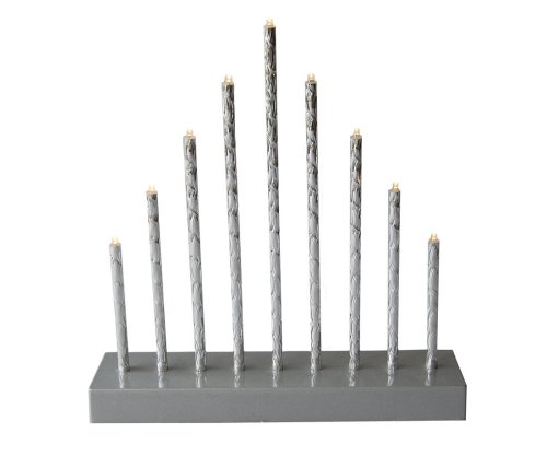 Svícen vánoční 9 svíček LED, teplá BÍ, Al + ABS STŘ, 26 x 24,8 x 5,7 cm, 3 x AA baterie.