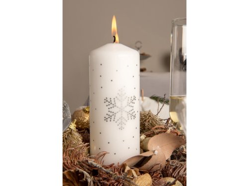 Svíčka 58x140 mm Vločka stříbrná, bílá