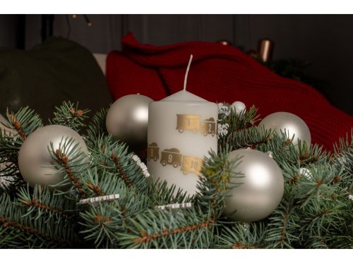 Svíčka 68x180 mm kalendář Vláček zlatý potisk, bílá svíčka