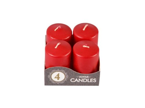 průměr: 3,8 cm výška: 6 cm barva: červená Burgund balení: 4 ks doba hoření: 7 hodin / 1 svíčka