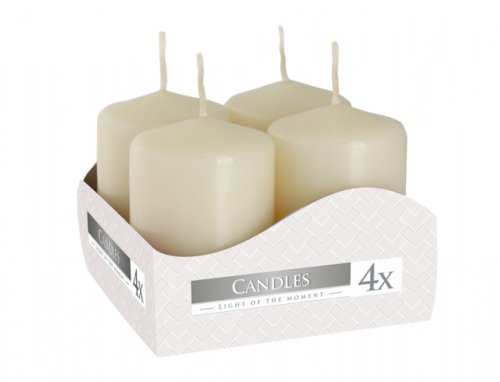 Adventní svíčka s matným vzhledem. Doba hoření: 7 hod. Barva: béžová. Průměr: 4 cm, výška: 6 cm. V balení jsou 4 svíčky.