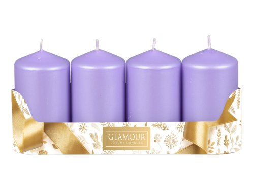 Sada adventních svíček se špičatou hlavou. Působivé metalické barevné odstíny podtrhuje matný povrch. Adventní věnec s nimi bude vypadat atraktivně a moderně. Doba hoření: 14 hodin. Rozměry: průměr 5cm, výška 9cm. Obsah balení: 4 ks svíček. Barva: světle fialová.