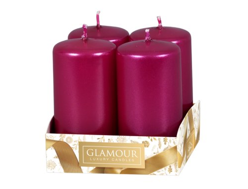 Adventní svíčky s rovnou hlavou v lesklém a hladkém metalickém provedení. Adventním věncům dodají jiskru. Doba hoření: 14 hodin. Rozměry: průměr 4 cm, výška 8cm. V balení jsou 4 ks svíček. Barva: malina.