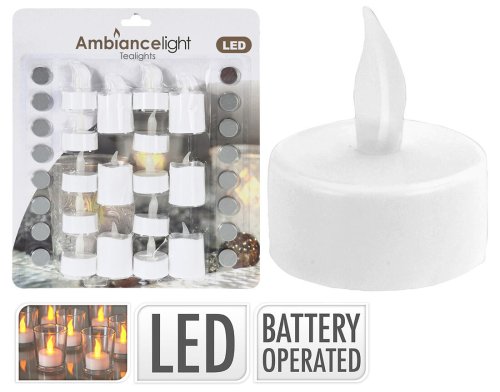 Svíčka čajová LED, pr. 3,5 cm, mix, s bateriemi, BÍ (16 ks).