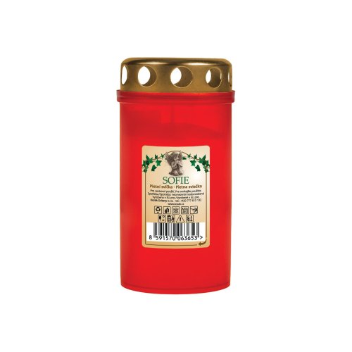 doba hoření: 40 hod výška: 12 cm hmotnost: 120 g parafín materiál: plast barva: bílá, červená