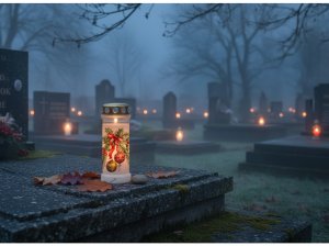SVÍČKA HŘBITOVNÍ DESIGN VÁNOČNÍ BÍLÁ