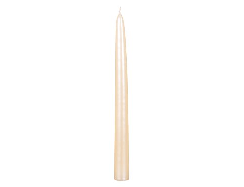 Perleťová kónická svíčka béžové barvy. Výška: 24 cm.