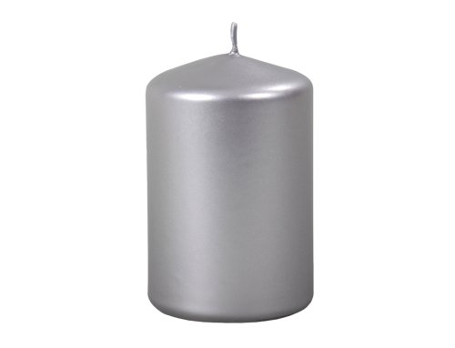 Svíčka ve tvaru válce s hladkým povrchem, v provedení metalický lesk. Ve vánočních dekoracích a upoutá pozornost. Doba hoření: 30 hodin. Rozměry: průměr 6 cm, výška 9 cm. Barva: stříbrná.