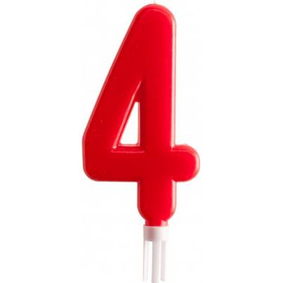 Svíčka na dort 15cm číslo 4 červená - Dekora