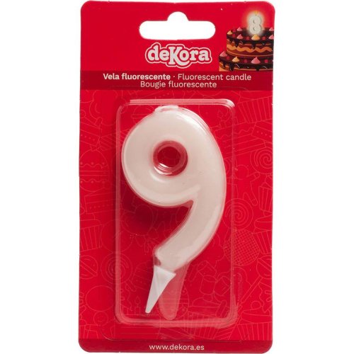 Svíčka na dort číslo 9 - svítí ve tmě. Velikost 6 cm.