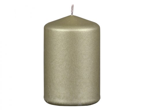 Svíčka ve tvaru válce, s plochou hlavou. Její povrch je zdobený jemným škrábáním. Má prémiový vzhled, který pozdvihne každou dekoraci či vazbu. Doba hoření: 30 hodin. Rozměry: průměr 6 cm, výška 9 cm. Barva: chromově zlatá.