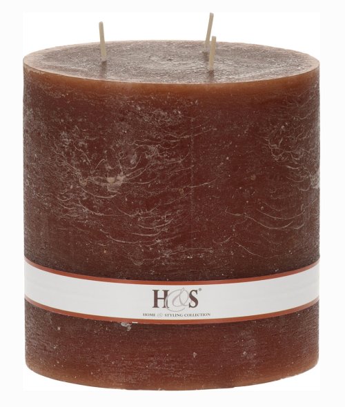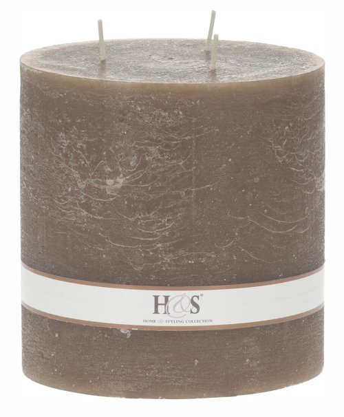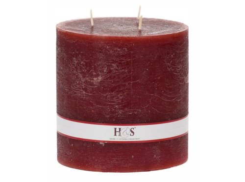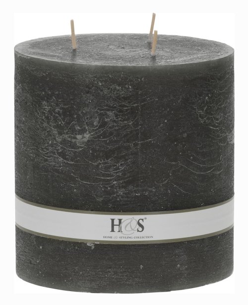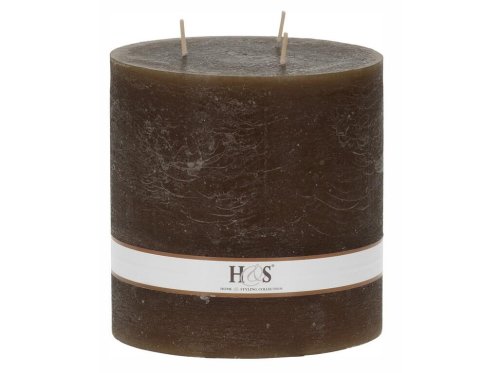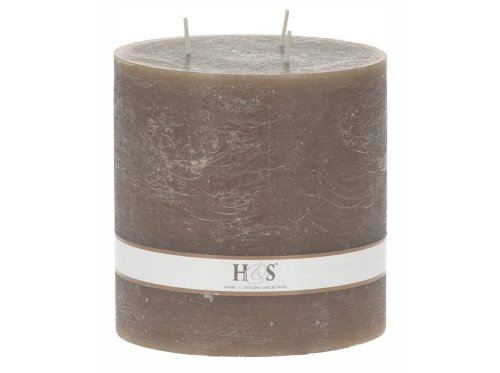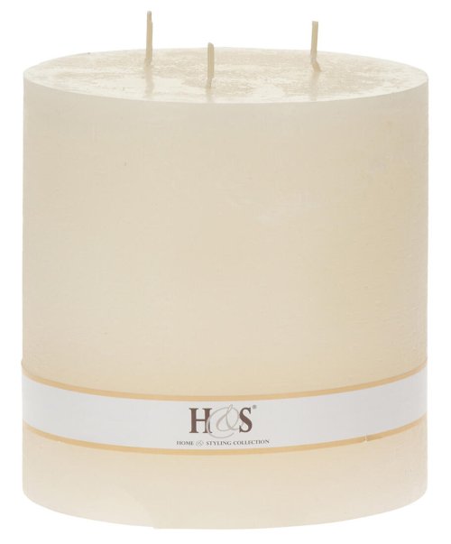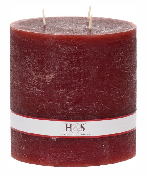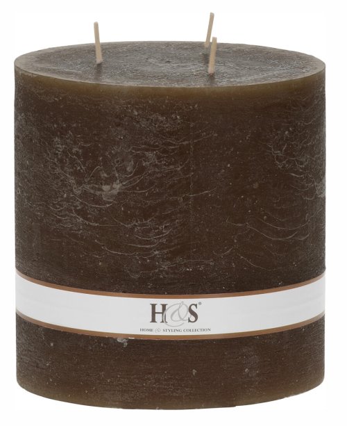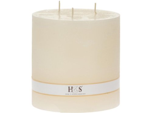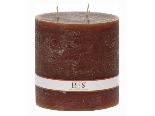 Jednobarevná svíčka ve tvaru válce s rustikálním povrchem.