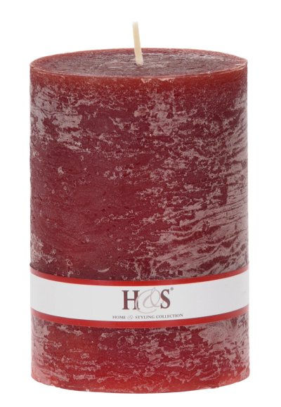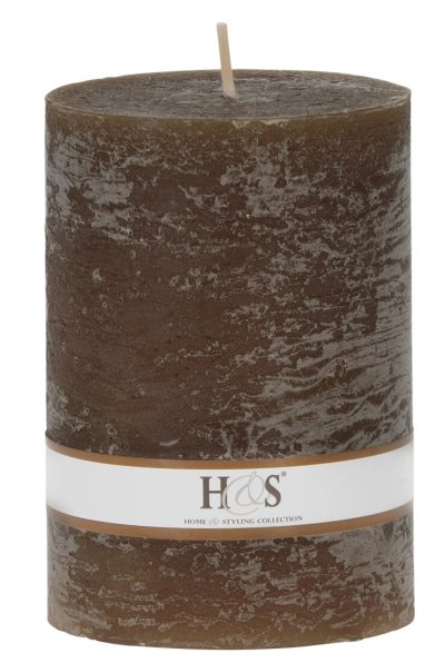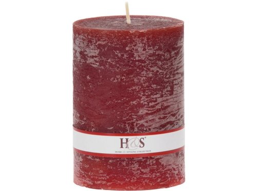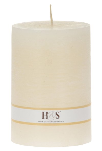 Jednobarevná svíčka ve tvaru válce s rustikálním povrchem.