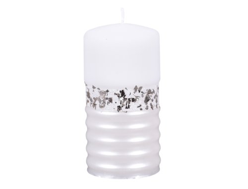 Svíčka ve tvaru válce. Její vzhled je tvořen třemi částmi - první je hladká, druhá s glitry a třetí metalická, vlnitá. Jako celek je velmi elegantní. Doba hoření: 84 hod. Rozměry: průměr 7 cm, výška 14 cm. Barva: bílá.