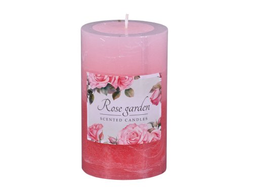 Dekorativní rustikální svíčka s vůní růžové zahrady přináší klasické květinové aroma s jemně nasládlým tónem. Vůně navozuje pocit klidu a svěžesti. Tříbarevné provedení s jemným přechodem růžových odstínů působí elegantně. Vhodná pro celoroční použití. Hoří rovnoměrně až 65 hodin. Rozměry: průměr 7 cm, výška 12 cm. Barva: růžová.