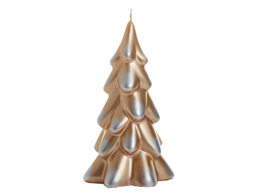 Vánoční svíčka ve tvaru stromku je vyrobena z kvalitního parafínu a slouží jako dekorativní prvek s možností zapálení během adventního období. Povrch je matný, zdobený zlatým odstínem se stříbrnými špičkami, které zvýrazňují slavnostní vzhled a dodávají svíčce elegantní lesk. Působí stylově v interiéru, na svátečně prostřeném stole i jako součást vánoční dekorace. Doba hoření: přibližně 16 hodin. Rozměry: průměr 8 cm, výška 15 cm. Barva: zlatá se stříbrnými špičkami.