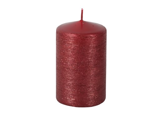 Škrábaná adventní svíčka s metalickým lesklým povrchem. Hlava je rovná, zaoblená. Dekorativní vzhled ozvláštní každý vánoční svícen či dekoraci. Průměr: 7 cm, výška: 12 cm. Doba hoření: 80 hodin. Barva: červená.