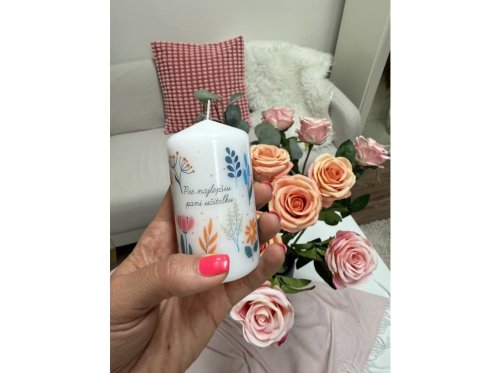 Originálně dekorovaná svíčka s jemnými malovanými květy a slovenským věnováním „Pre učiteľku“. Skvělá volba jako drobný, ale srdečný dárek ke Dni učitelů, vysvědčení nebo na rozloučenou. Svíčka je decentní dekorací, která zároveň potěší.