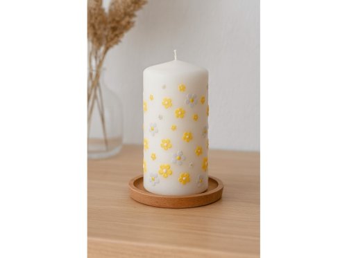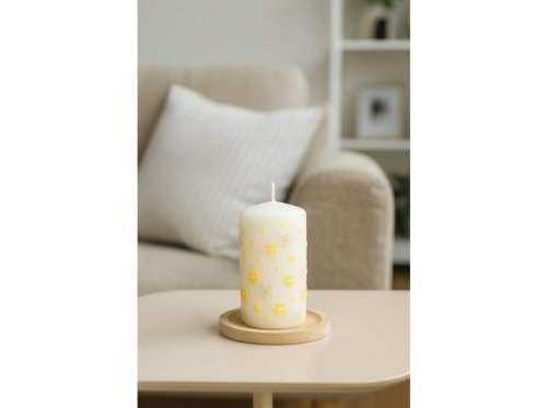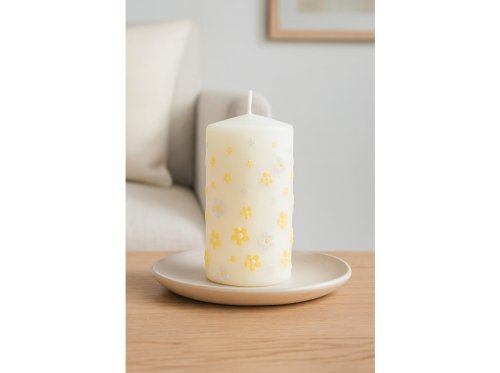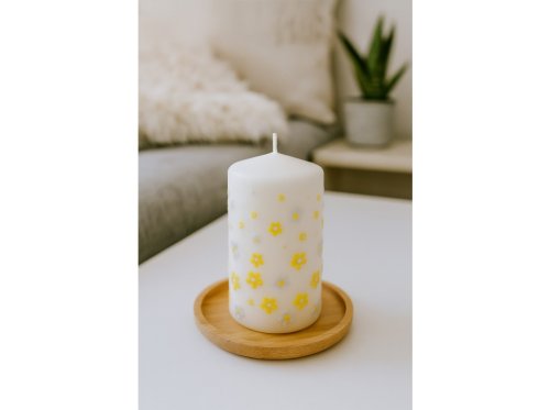 Svíčka válec s motivem aplikace kytičky 60x110 mm