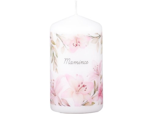 Svíčka válec s motivem Mamince - lilie květ 50x90 mm