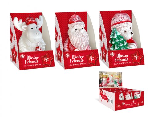 Svíčka vánoční VÁNOCE ZIMNÍ PŘÁTELÉ 11cm 185g MOM 12ks