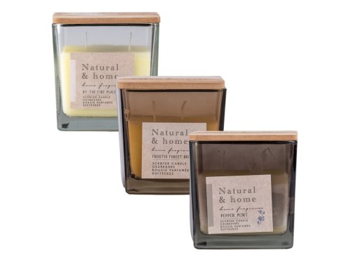 Vonná svíčka ve skleněné nádobě o rozměrech 120×120 mm s přírodním dřevěným víčkem v designu Natural Home. Po zapálení provoní prostor příjemnými vůněmi a dodá interiéru hřejivou atmosféru. Stylové provedení z ní dělá krásný doplněk i vhodný dárek. Nabízena v mixu vůní a barev. Zboží je dodáváno v mixu. Doručované zboží je vybíráno náhodně a nelze vybrat konkrétní provedení.