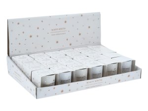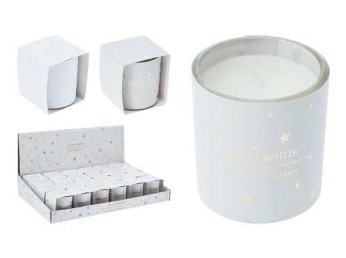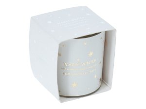 Svíčka ve skle 40x50mm vonná v dárkové krabičce Warm Winter mix vůní, bílá