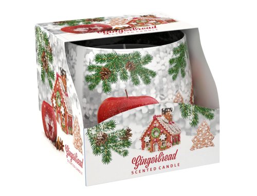 Vonná svíčka ve skle s vůní perníku vytváří sladkou, hřejivou vůni s nádechem medu a koření, která evokuje vánoční atmosféru a domácí pohodu. Skleněná nádoba s potiskem je balena v dárkové krabičce, vhodná i jako drobný dárek. Hoří přibližně 25 hodin. Hmotnost: 100 g. Barva: šedá / červená.