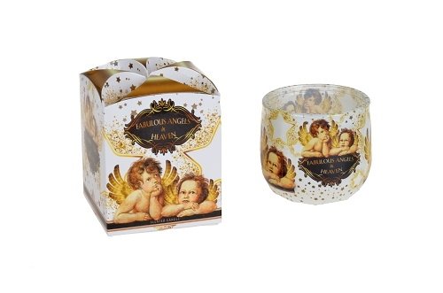 Vonná svíčka ve skle s jemnou vůní vytváří slavnostní a elegantní atmosféru. Vůně působí harmonicky a přináší pocit klidu a pohody. Skleněná nádoba je doplněna dekorem v bílozlatém provedení a balena v dárkové krabičce, což ze svíčky činí vhodný dárek pro adventní období. Hoří přibližně 25 hodin. Hmotnost: 100 g. Barva: bílá / zlatá.