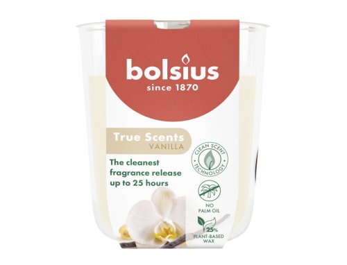 Vonná svíčka ve skle. Skleněná nádoba má silné dno a působí velmi elegantně. Voní krémově, po vanilce. Svíčka z kolekce True scents kombinuje ikonické vůně s přírodními výtažky. Obsahuje přírodní veganský vosk a neobsahuje palmový olej. Díky pletenému bavlněnému knotu má svíčka stabilní plamen a nekouří. Doba hoření: 24 hodin. Rozměry: průměr 7 cm, výška 8 cm. Barva: béžová.