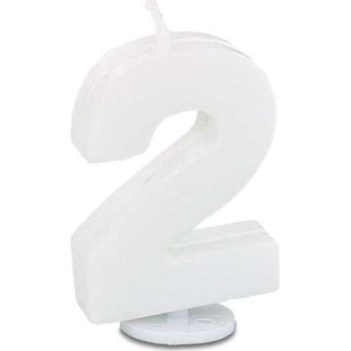 Svíčka ve tvaru číslice 2, výška 4 centimetry, bílá.