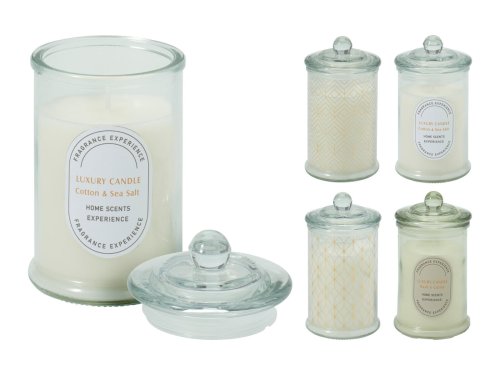 průměr: 7 cm výška: 14,5 cm mix 4 dekory / vůně: bazalka a kaktus, svěží Gardenie, eukalyptus a rozmarýna, bavlna a mořšká sůl doba hoření: 40 hodin