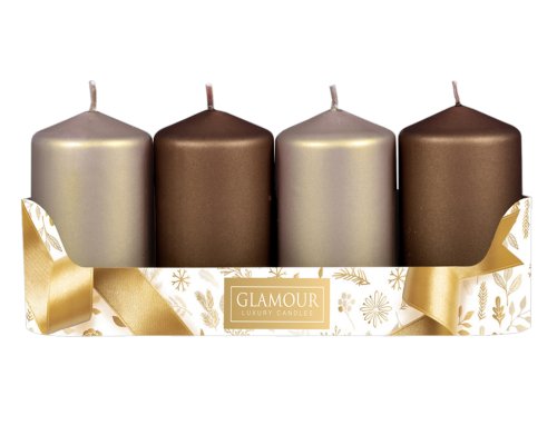 Sada adventních svíček, ozvláštněná tím, že kombinuje dvě barevné varianty svíček. Svíčky jsou hladké, s metalickým, matným povrchem a špičatou hlavou. Díky kombinaci tmavě béžové a tmavě hnědé nebude adventnímu věnci chybět styl. Doba hoření: 14 hodin. Rozměry: průměr 5 cm, výška 9 cm. Obsah balení: 2 ks svíček barvy tmavě béžové a 2 ks svíček barvy tmavě hnědé.