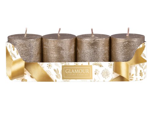 Rustikální adventní svíčky ve tvaru válce. Svíčky mají metalický povrch. Budou se vyjímat v moderním, dobovém i rustikálním interiéru. V balení jsou 4 kusy. Doba hoření: 21 hodin. Velikost svíčky: průměr 5cm, výška 6cm. Barva: měděná.