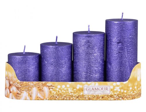 Adventní svíčky s rustikálním metalickým povrchem. Svíčky v tomto provedení jsou velmi dekorativní. Svíčky jsou stupňovité. Svíčka má rovnou hlavu. Doba hoření: 20 hodin. Rozměry: průměr 5 cm, výšky 6 cm, 8 cm, 10 cm, 12 cm. Barva: modrá.