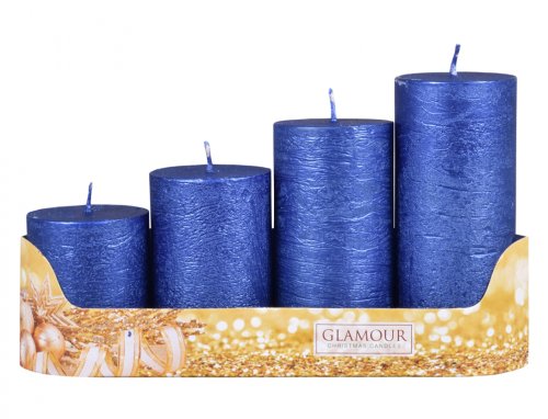 Adventní svíčky s rustikálním metalickým povrchem. Svíčky jsou stupňovité: průměr: 5 cm, výšky: 6 cm, 8 cm, 10 cm, 12 cm. Barva: fialová.
