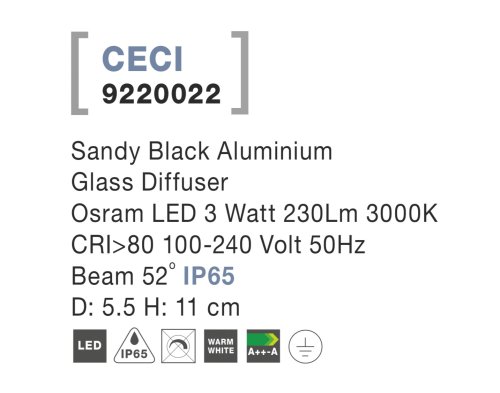 Svítidlo je vyrobeno z vysoce kvalitního hliníku a je odolné proti tryskající vodě a prachu dle standardu IP65. Díky tomu je jeho životnost velmi dlouhá. Energeticky úsporná LED technologie navíc ušetří vaši peněženku.
