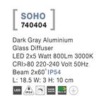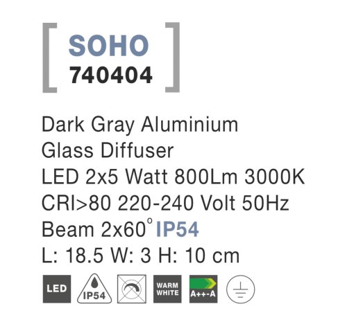 Velké nástěnné svítidlo Nova Luce SOHO WALL GREY 2 bylo navrženo speciálně pro zahrady, terasy a jiné venkovní prostory. Proto spolu s ním získáte ochranné krytí IP54 proti přírodním vlivům. Jeho doménou je tedy voděodolnost a nevadí mu ani zaprášené prostředí. Nikde však není psáno, že jej nevyužijete i vevnitř. Futuristické vzezření velice rádo poutá pozornost a tak je vhodné i pro interiér vašeho domu či bytu. Vaše oči se od něj neodpoutají i díky jeho zpracování z hliníku té nejvyšší kvality, takže vám dlouho vydrží.