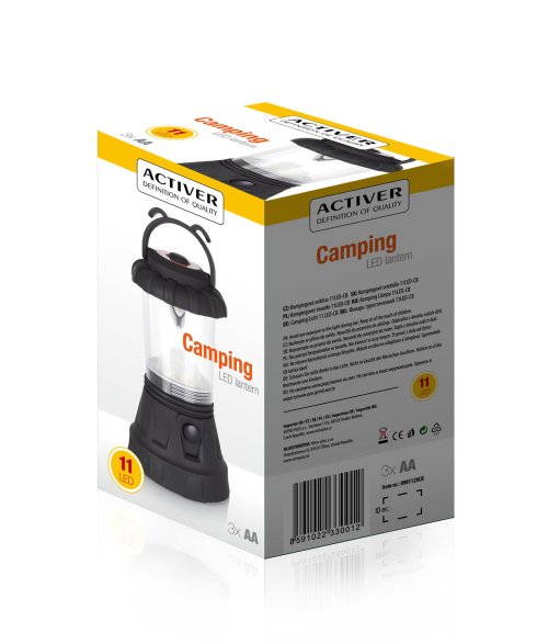 Kempingová svítilna s 11 LED diodami. Svitiltilna je kompaktní a lehká s praktickým držadlem pro snadné zavěšení. Vysoká svítivost a nízka spotřeba. Využijete při kempování nebo i na zahradě.